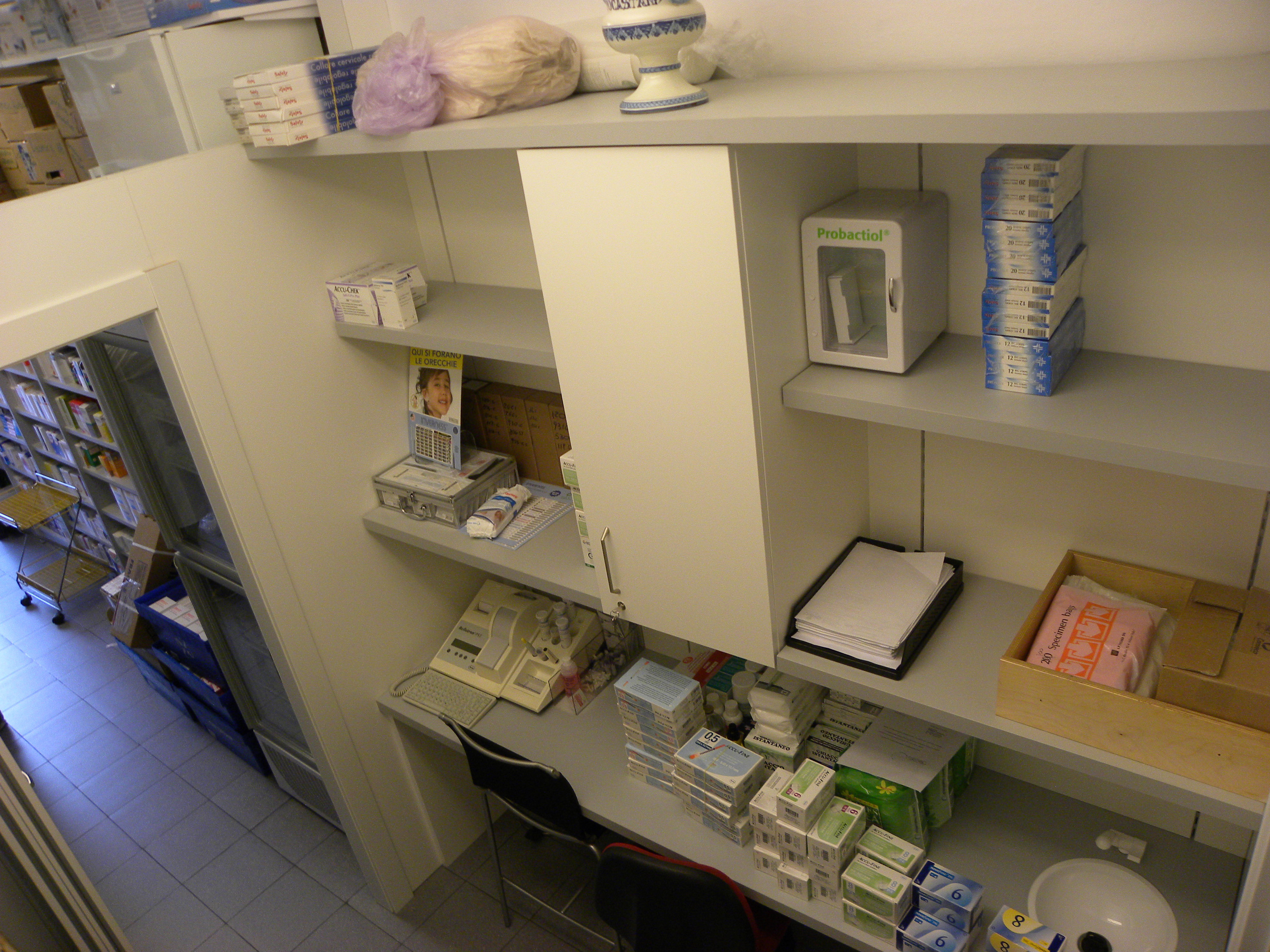 Farmacia Dr. Lucini - arredo retro + box autoanalisi